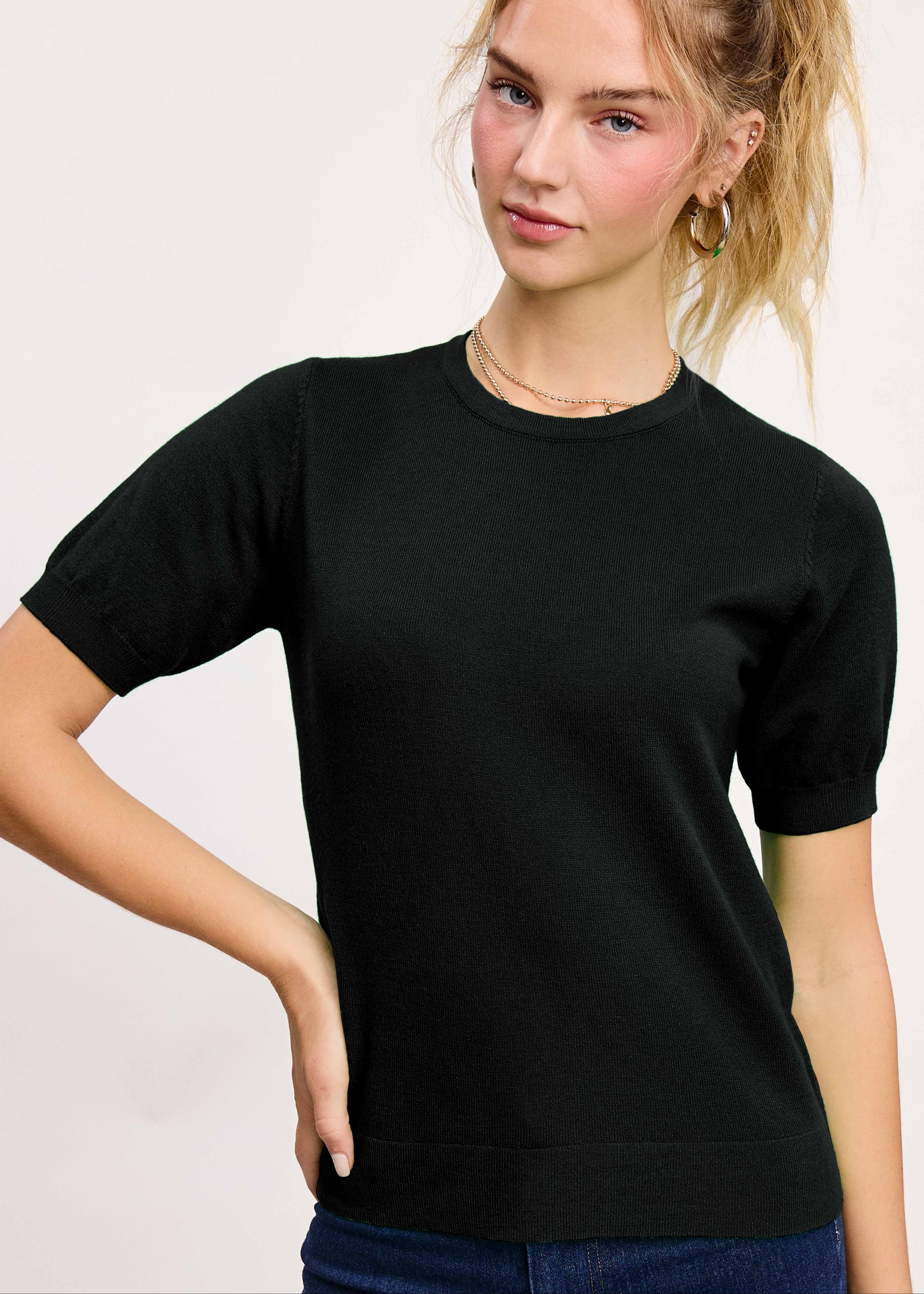 The perfect basic top features subtle puffed sleeves for an elevated touch. Made with stretchy and comfy knit top and crew neckline. Cozy with your favorite bottom, you'll be reaching for this again and again. From casual to classic look, this will be your go-to everyday wear throughout all season.