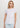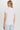a slightly oversize tee with contrast stitching on her sleeves, hem and pocket. She has slits at each side and vertical railroad-stitch seaming in back.