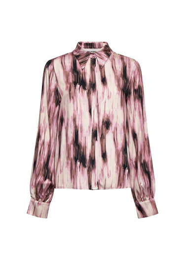 A lightweight shirt with an irregular print and a clean silhouette. A piece that adds character to everyday looks without being overbearing. Perfect with denim, tailored trousers, or midi skirts.
