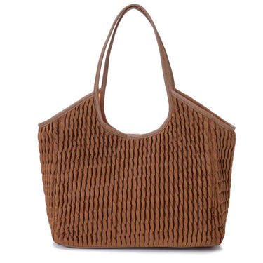 Nylon Puckered Puffer Tote with magnetic closure and removable wristlet pouch.