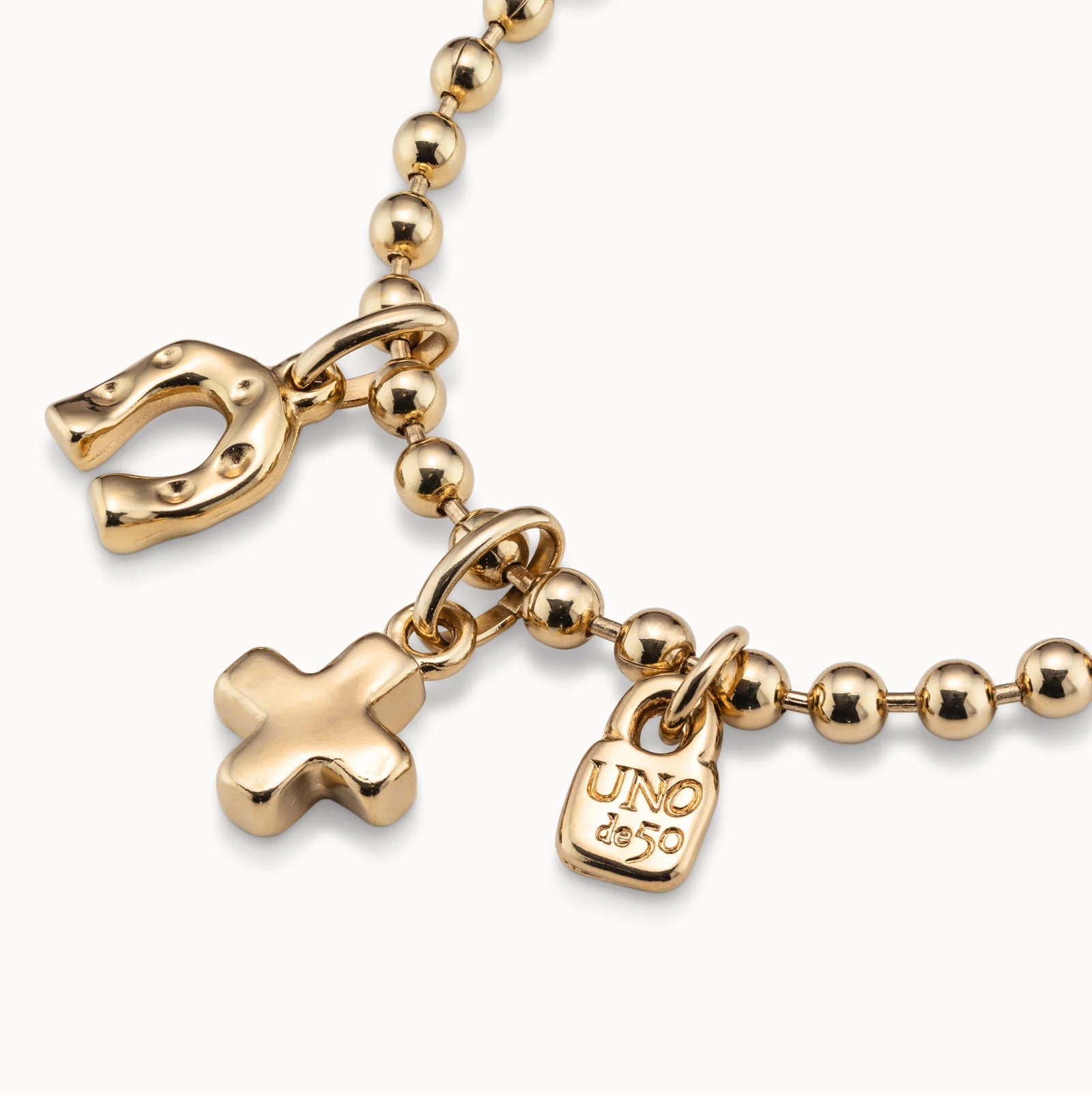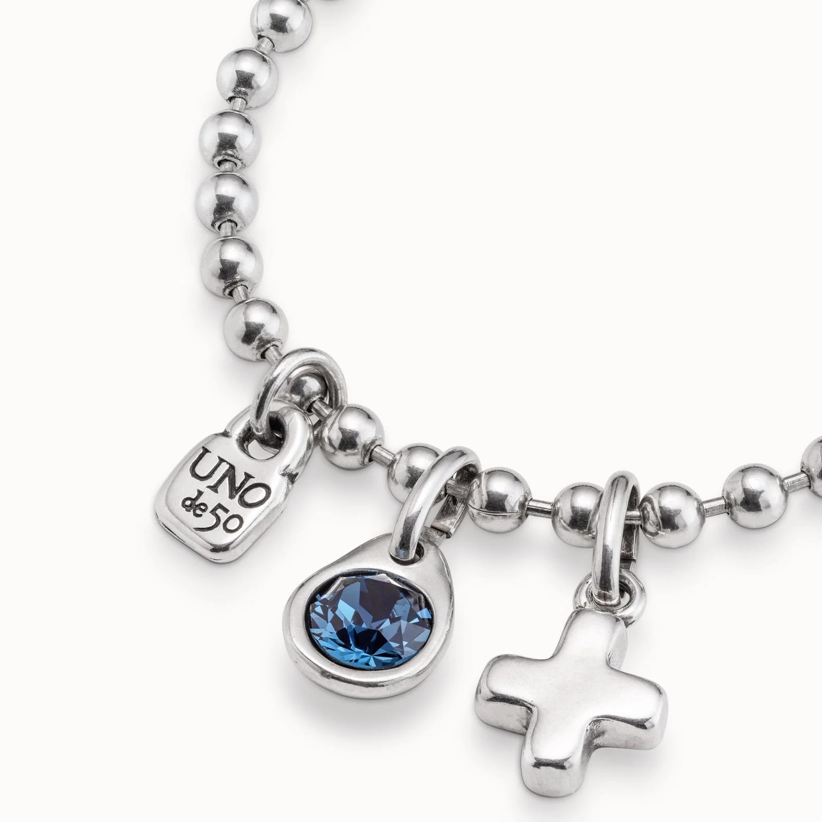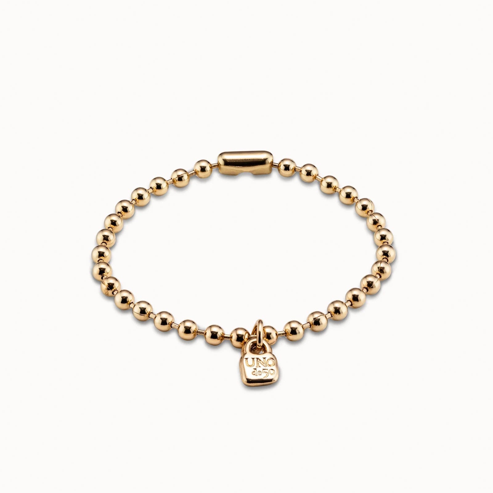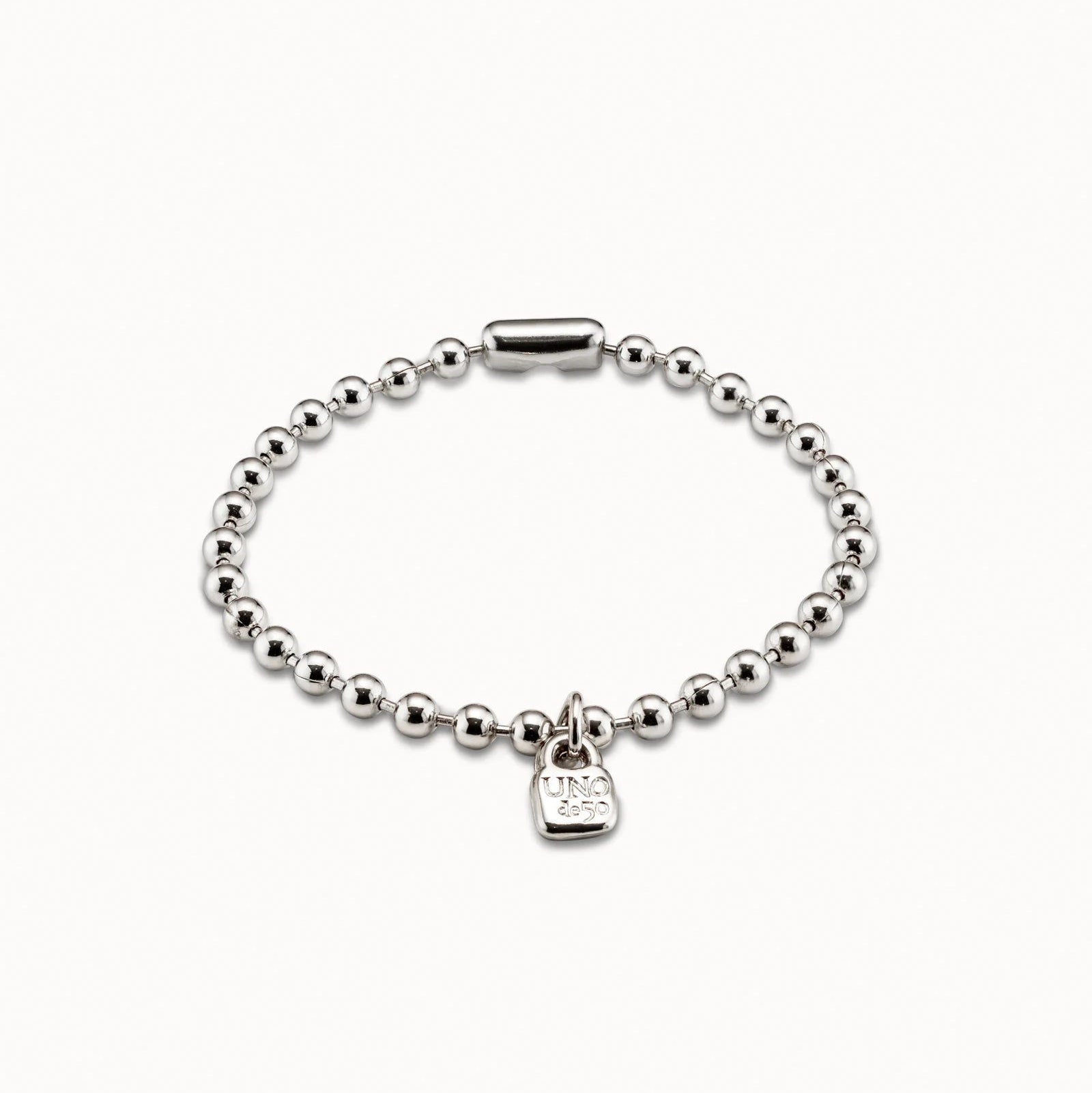 Silver-plated bracelet made up of several ball-shaped pieces in which you can include the charms of UNOde50. A timeless jewel that will become your lucky charm. Piece 100% handmade in Spain by UNOde50.