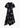 Midi dress with asymmetric hem, short butterfly-style sleeves, and round neckline, in black color with contrasting floral stroke print.