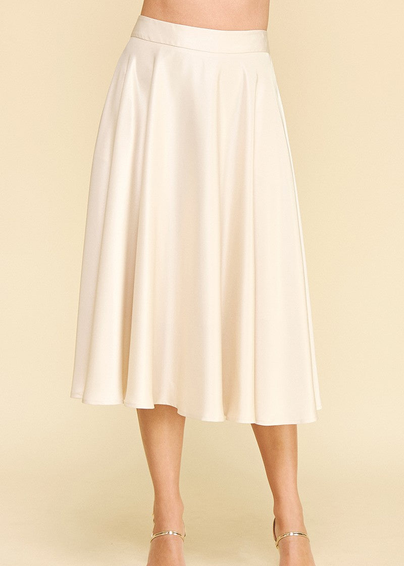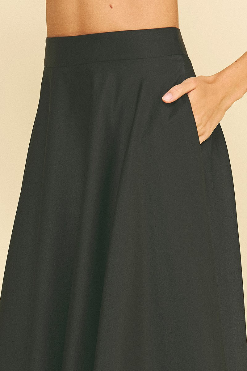 SILKY PLEATED MIDI SKIRT SIDE POCKETS ZIPPER AT BACK.