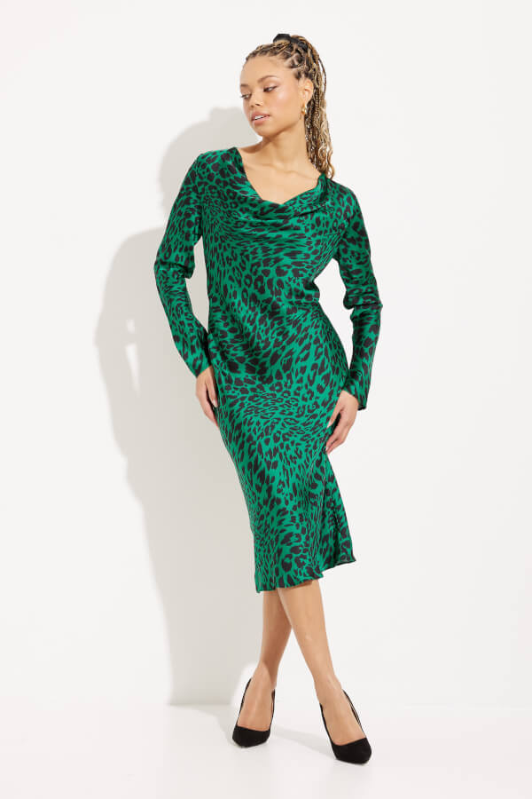 Elevate your wardrobe wearing this alluring Joseph Ribkoff style, designed in a charming leopard printed satin blend, and featuring a relaxed and cozy fit. This is the perfect choice for your fall/winter wardrobe, a perfect marriage of style and comfort. Strut your stuff by pairing this with heels or ankle boots.