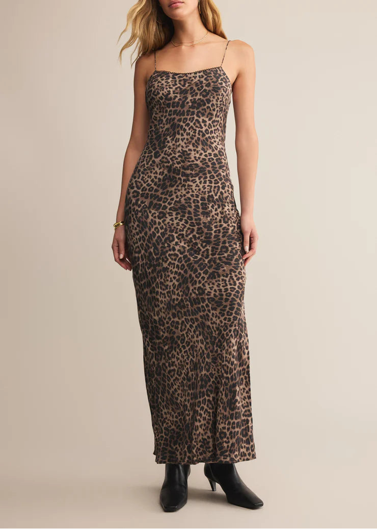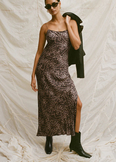 Designed in soft stretch rayon with a standout leopard print, this square-neck midi feels as good as it looks with scalloped trim and a side slit. Adjustable straps and a smooth lining keep it effortlessly wearable, day or night.