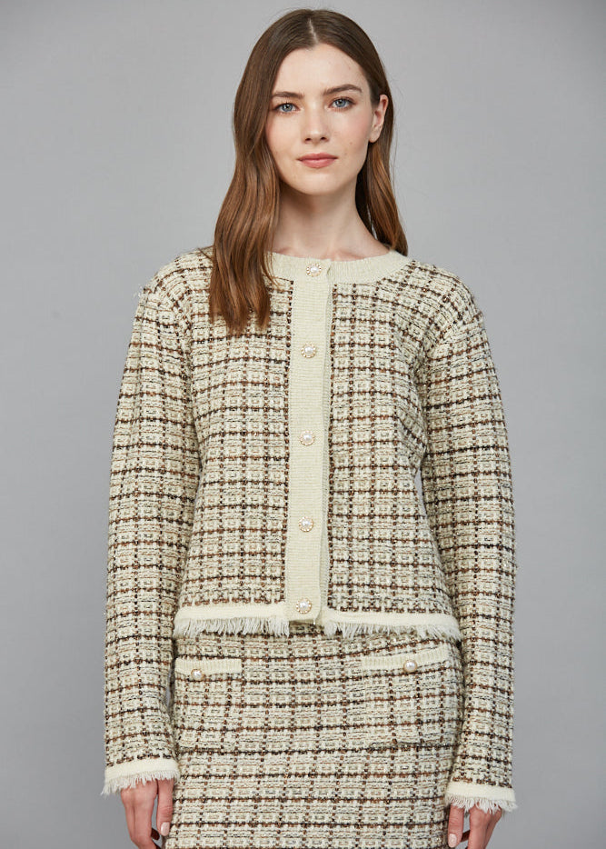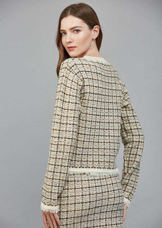 CHECK PATTERN TWEED KNIT CARDIGAN