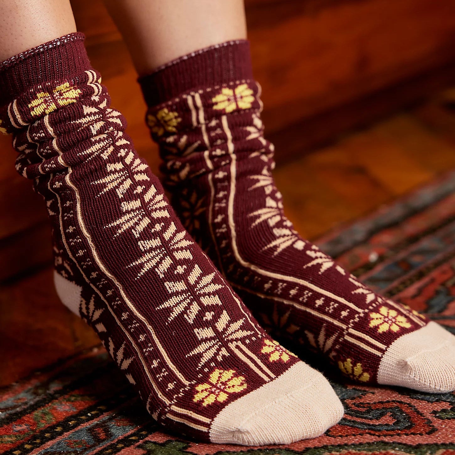 So cute and cozy, these forever classic crew socks are featured in a seasonal, Nordic-printed design for a wintery finishing touch.