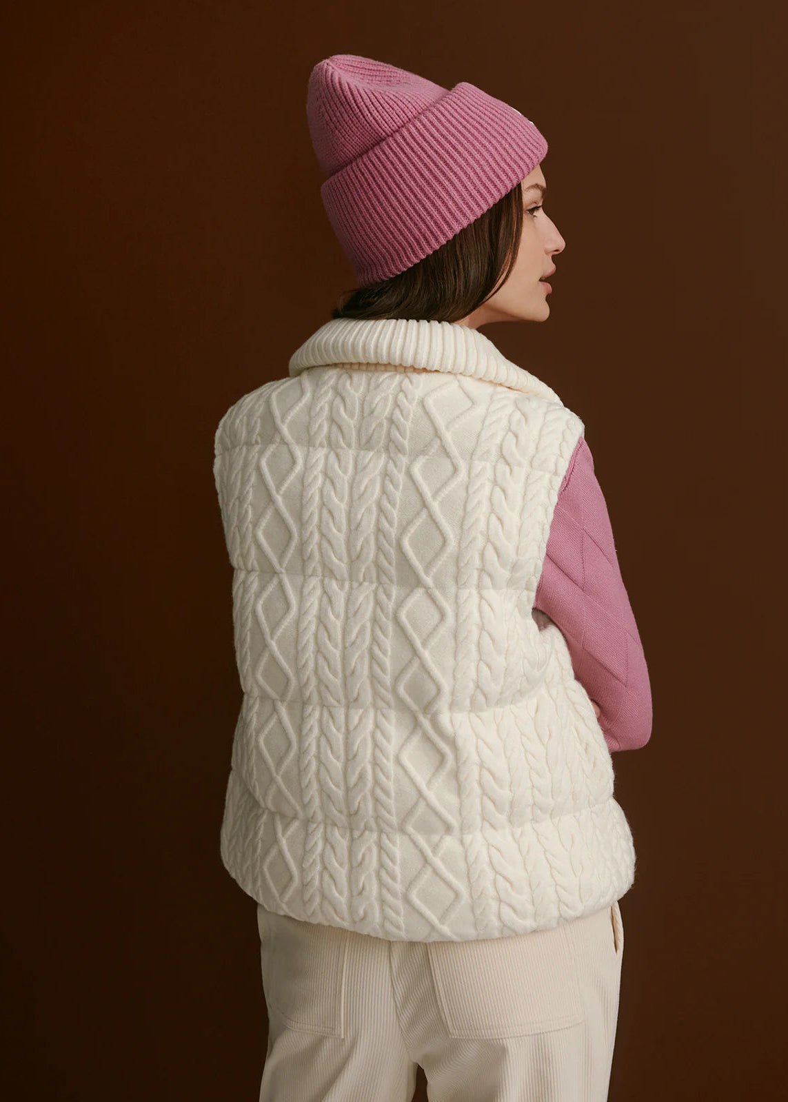 Add an extra layer of style to your look with the Irina gilet - a contemporary outerwear style with a knitwear twist. It's padded with a DuPont Sorona® fill to keep you warm and is elevated with classic cable stitching in a plush knit. It's complete with a chunky rib knitted collar, pockets, and a practical double-ended zip.