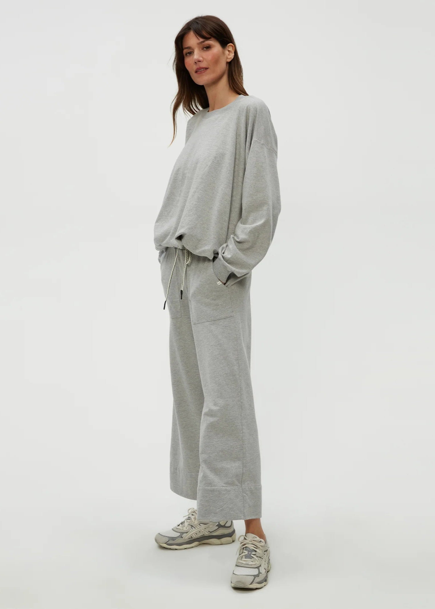 Blend an easy fit with soft 100% cotton and you’ll get these pants. Hugging your body in all of the right places, this cropped wide leg pant features an elasticized high-waist and drawstring along with front patch pockets.