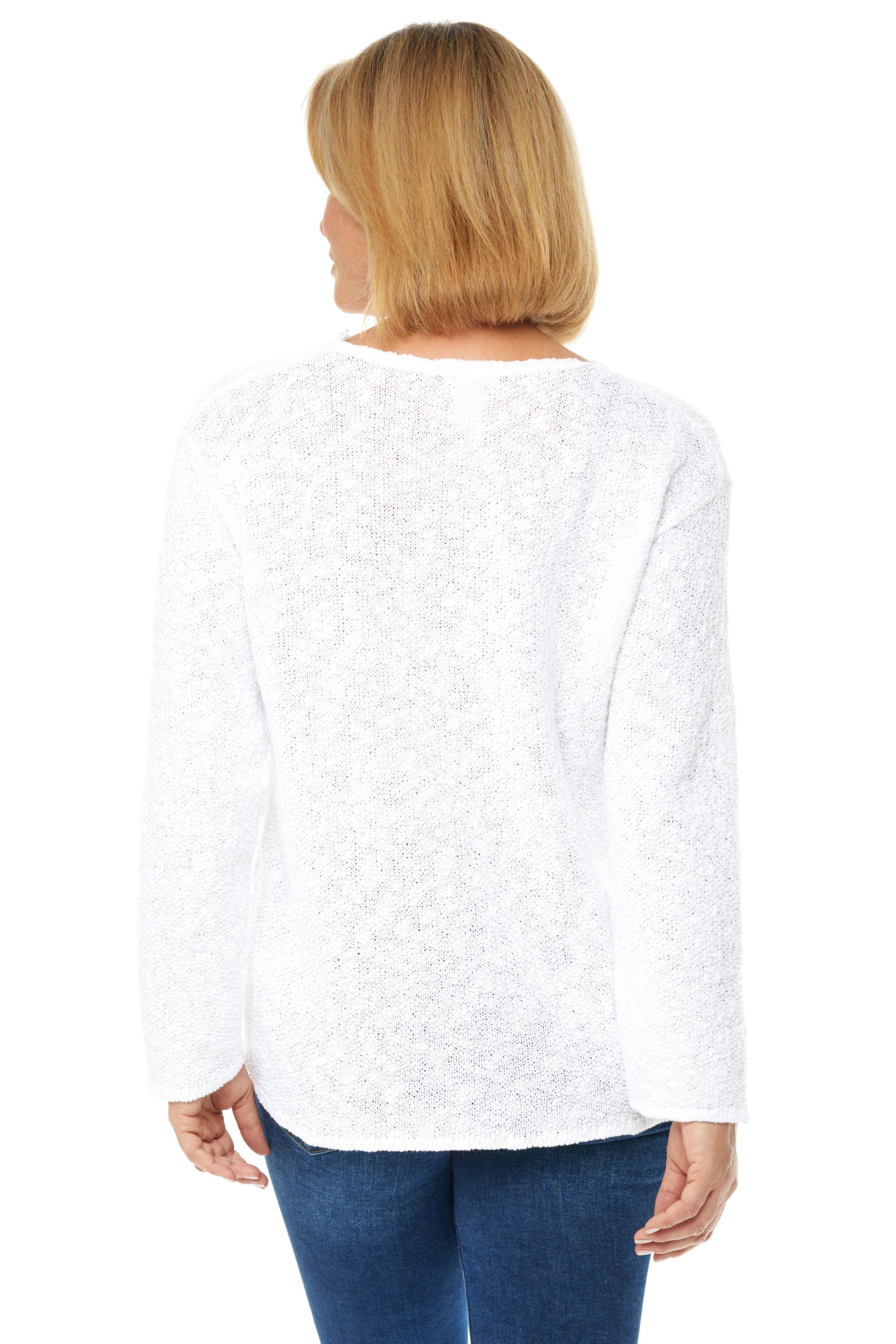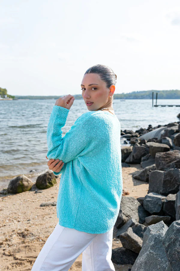 The nubby scramble stitch makes this feel a little fun and feminine. Great over a tank or tee or on its own.